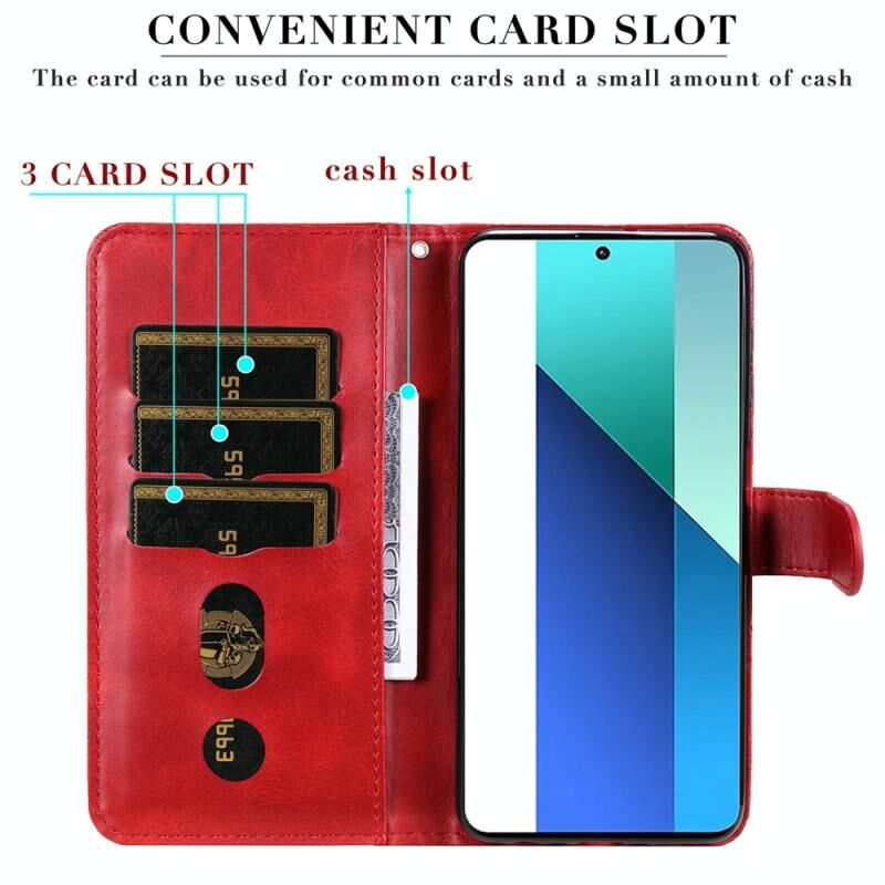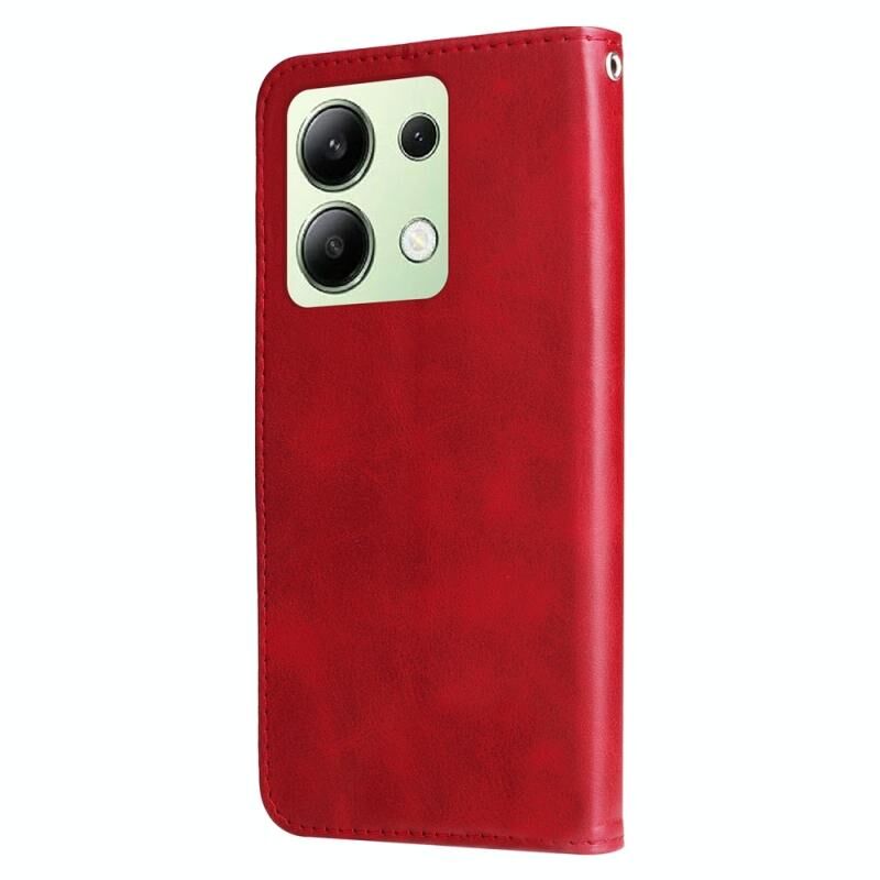 Για Xiaomi Redmi Note13 4G Μόδα μοσχάρι υφή φερμουάρ δερμάτινη θήκη τηλεφώνου (κόκκινο)