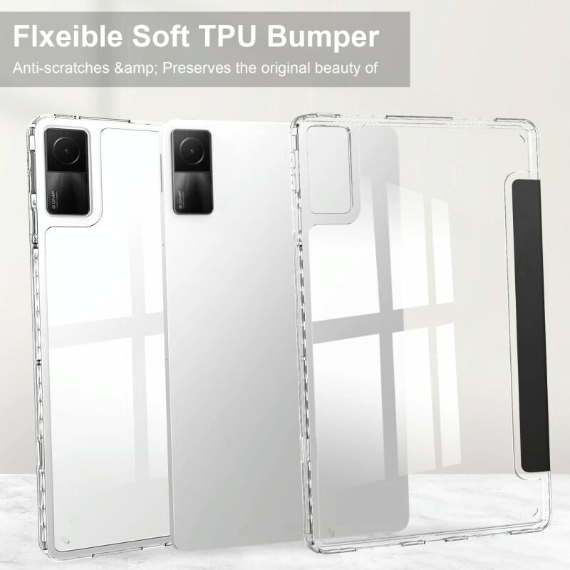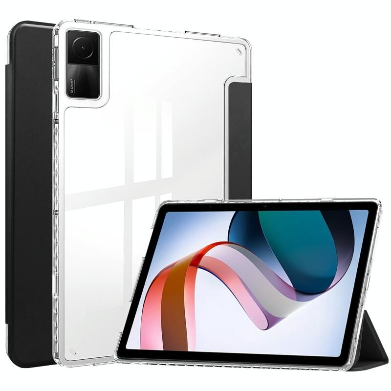 Για Xiaomi Redmi Pad 10.6 3-Fold Clear Back Cover Leather Smart Tablet Case (Μαύρο)