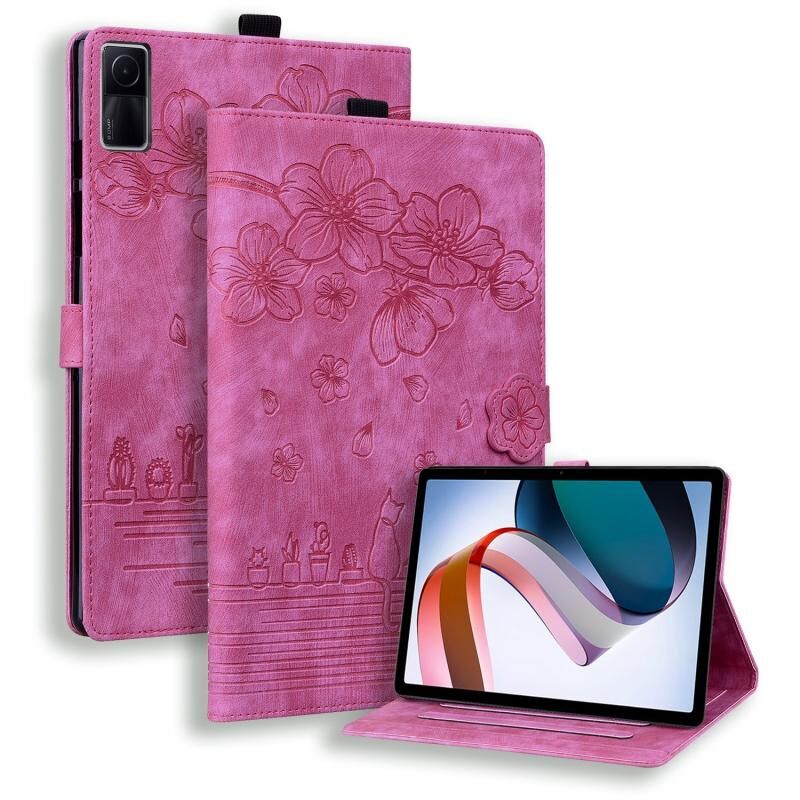 Για Xiaomi Redmi Pad 10.61 2022 Θήκη Ταμπλέτας από Δέρμα με ανάγλυφο σχέδιο κινούμενων σχεδίων Sakura Cat (Πράσινο)