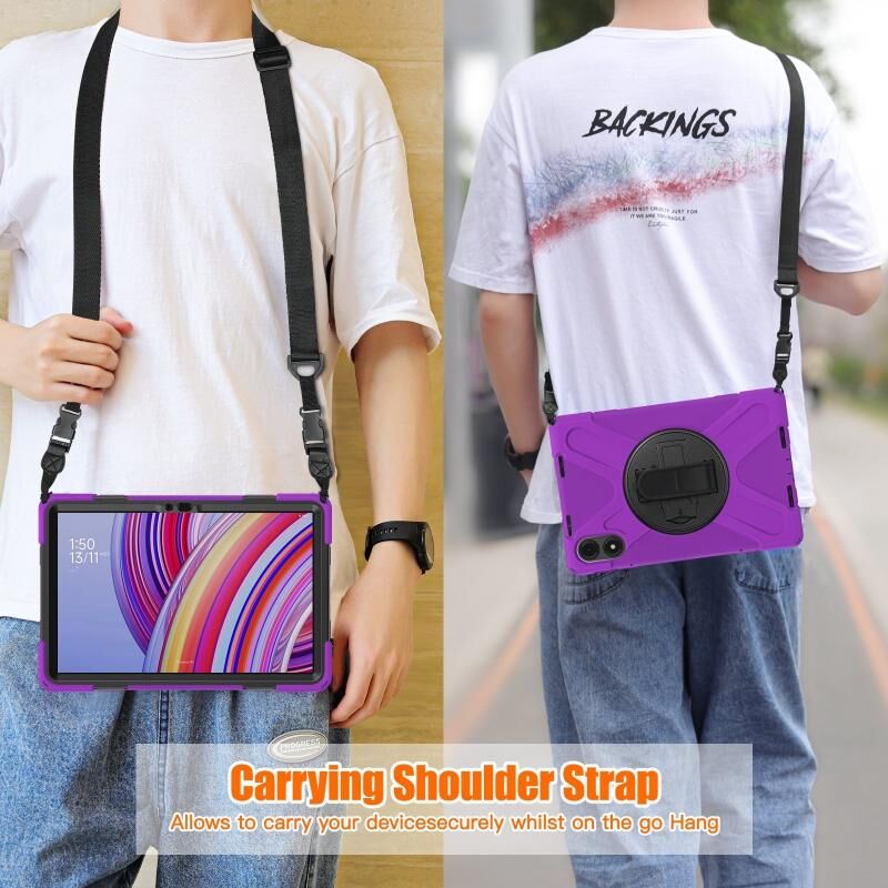 Για Xiaomi Redmi Pad Pro 12.1 Περιστρεφόμενο κάτοχος σιλικόνης υβριδική θήκη tablet PC με λουράκι ώμου (μωβ)