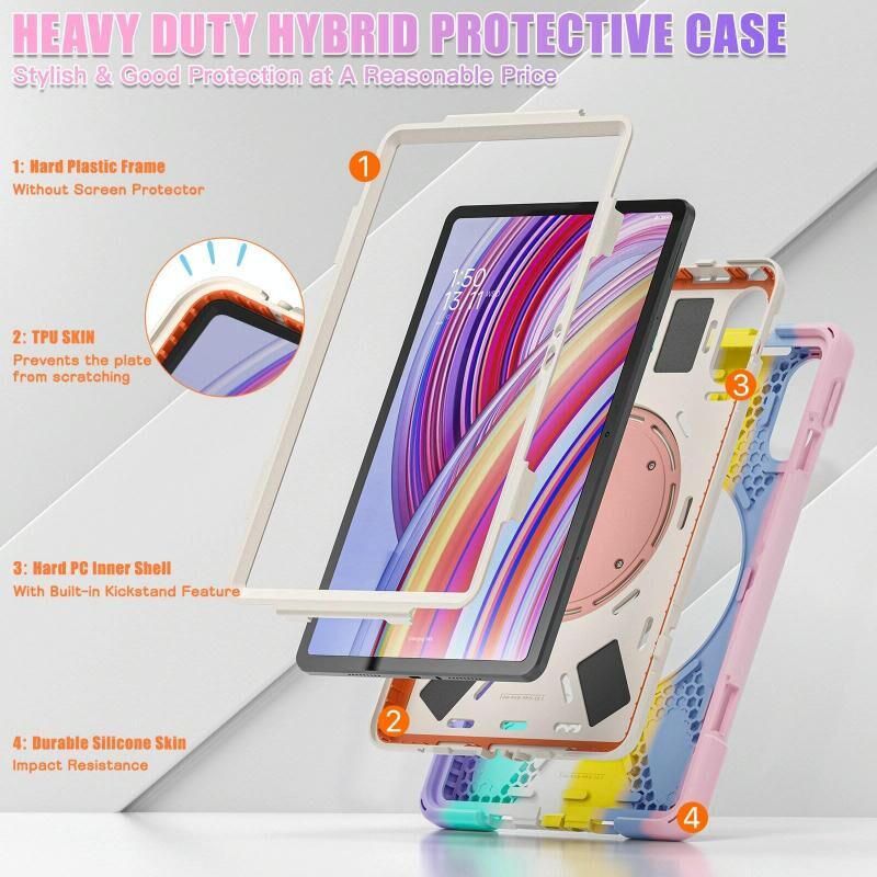 Για Xiaomi Redmi Pad Pro 12.1 Θήκη Ταμπλέτας Υβριδική Σιλικόνης PC με Στήριξη & Λουρί Ώμου (Colorful Pink)