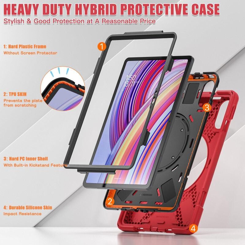 Για Xiaomi Redmi Pad Pro 12.1 Θήκη Ταμπλέτας Υβριδική Σιλικόνης PC με Στήριξη & Λουρί Ώμου (Red)
