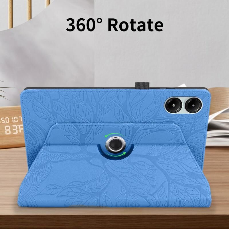 Θήκη δερμάτινη με ανάγλυφο σχέδιο "Δέντρο Ζωής" και περιστροφή για Xiaomi Bluemi Pad Pro 12.1 (Μπλε)