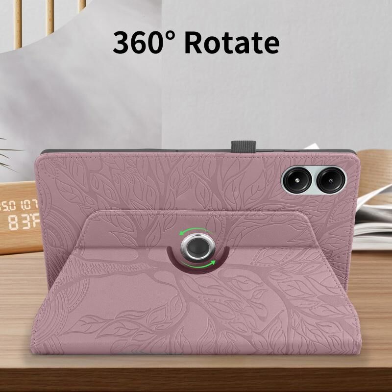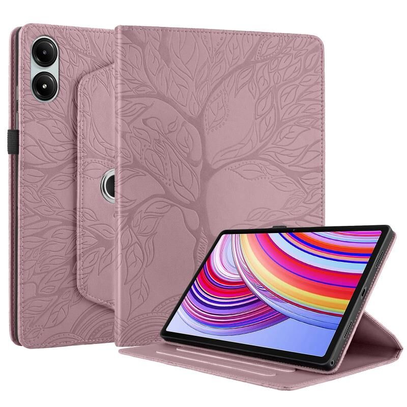 Θήκη δερμάτινη με ανάγλυφο σχέδιο "Δέντρο Ζωής" και περιστροφή για Xiaomi Rose Goldmi Pad Pro 12.1 (Κόκκινη)
