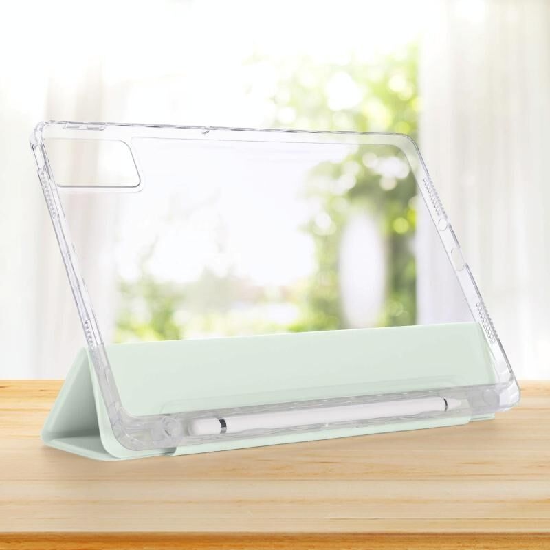 For Xiaomi Redmi Pad SE 11 3-Fold Clear Acrylic Leather Tablet Case(Light Green)