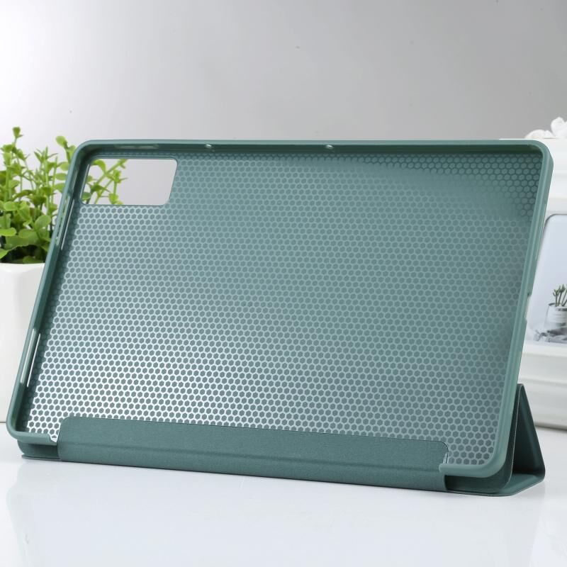 Για Xiaomi Redmi Pad SE 2023 Τρεις φορές κάτοχος Flip Tablet δερμάτινη θήκη (σκούρο πράσινο)
