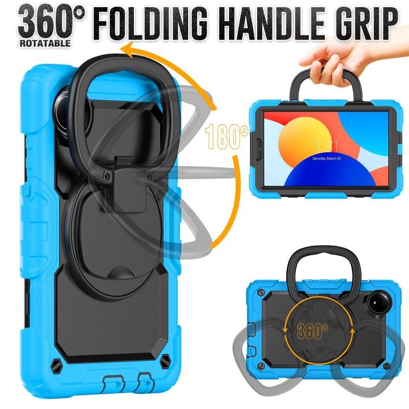 For Xiaomi Redmi Pad SE 8.7 2024 D Type Silicone Hybrid PC Tablet Case with Handle Holder(Light Blue)