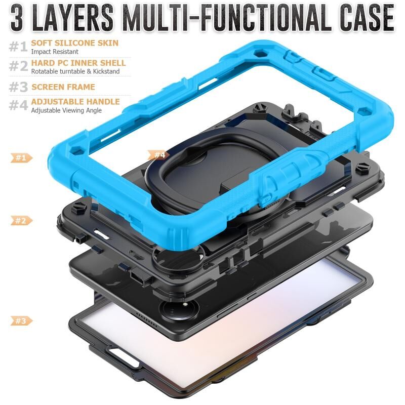 6. Shoulder Strap: Shoulder grip can be slanted and release your hands completely. This function is perfect for traveling, restaurant ordering, home product introduction, engineer outdoor operation, teacher, etc. Also, the strap allows you to hang up your tablet behind car seat for entertainment for kids.