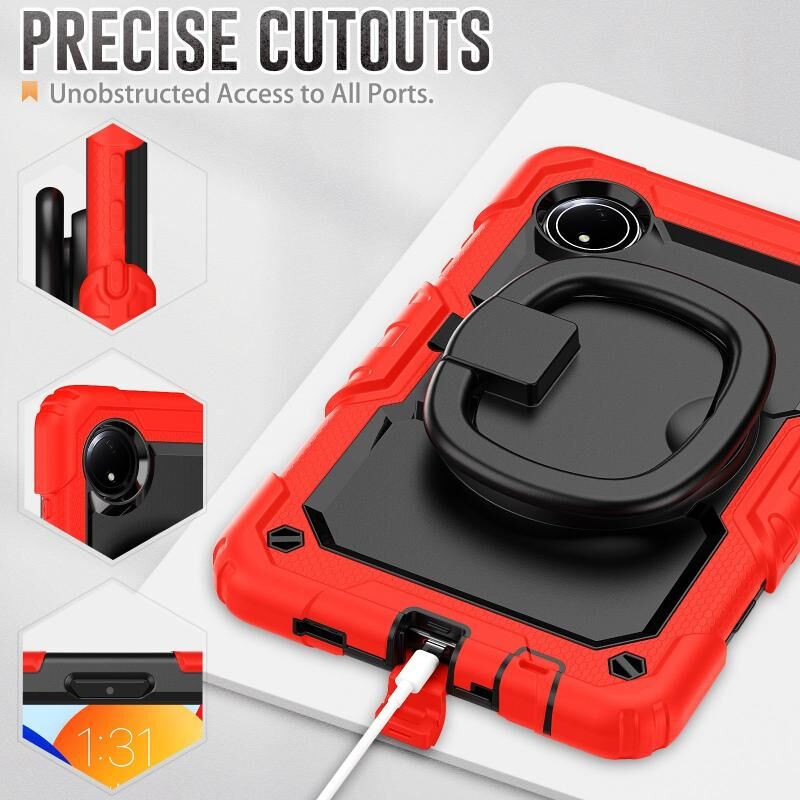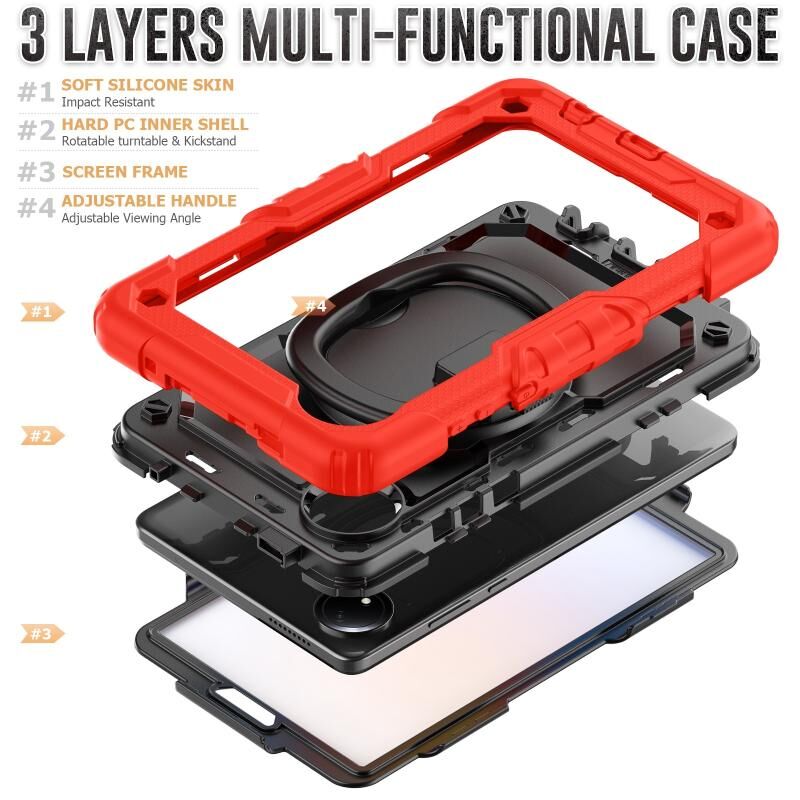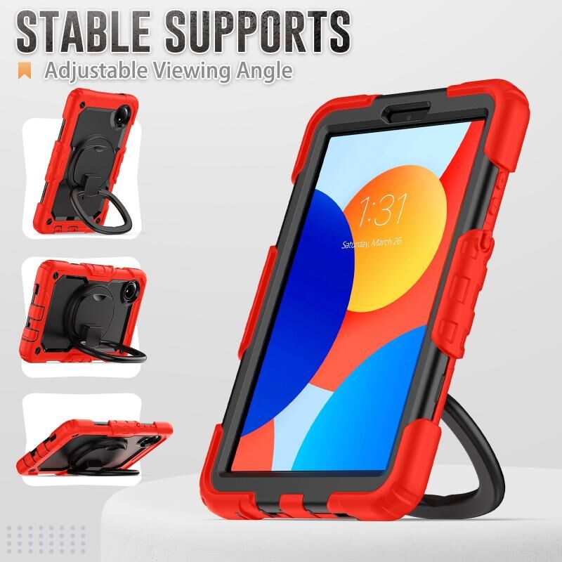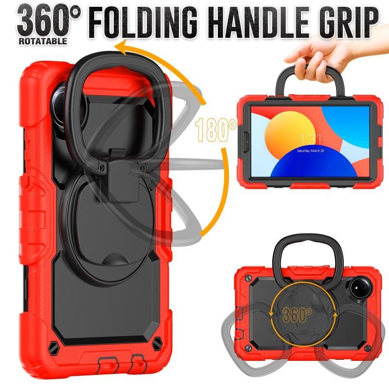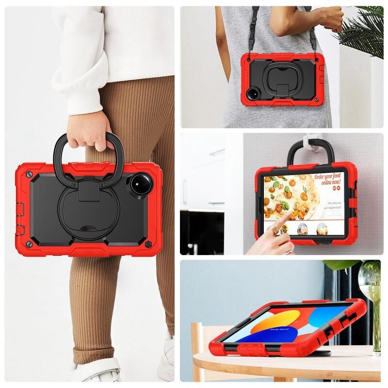 For Xiaomi Redmi Pad SE 8.7 2024 D Type Silicone Hybrid PC Tablet Case with Handle Holder(Red)