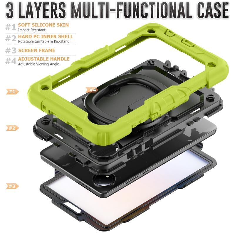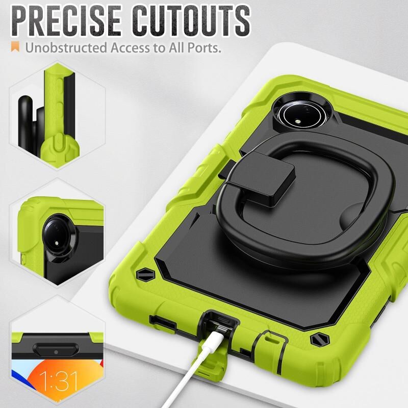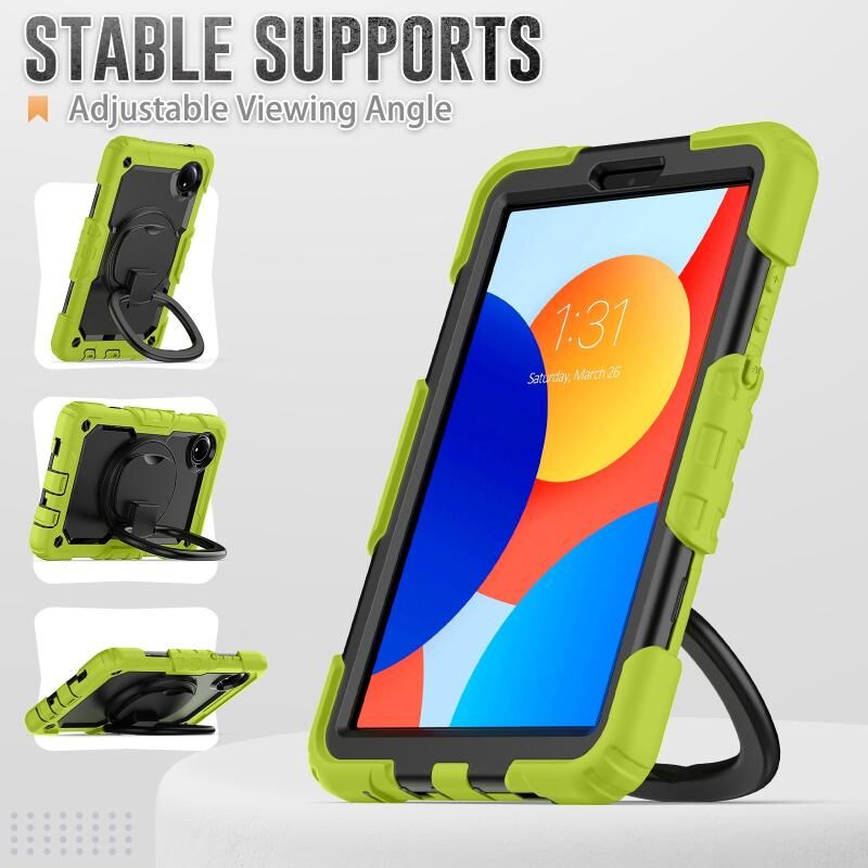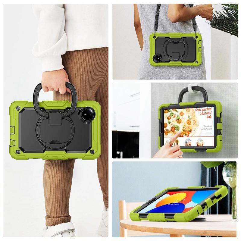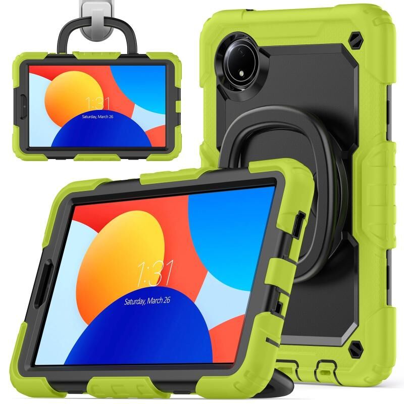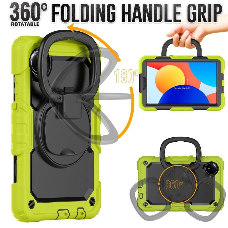 For Xiaomi Redmi Pad SE 8.7 2024 D Type Silicone Hybrid PC Tablet Case with Handle Holder(Yellow Green)