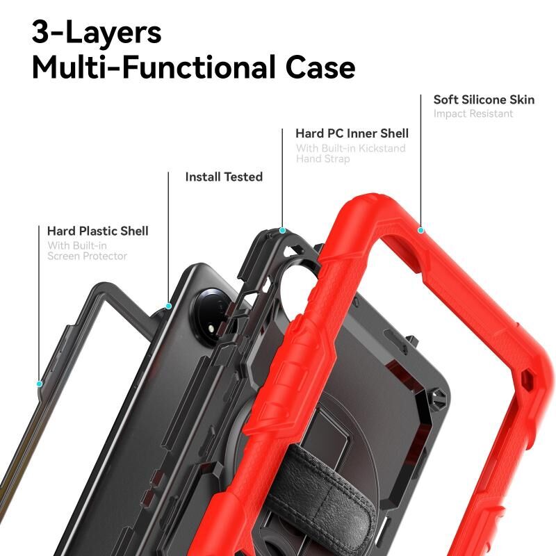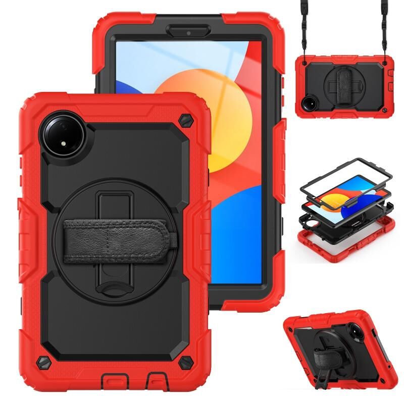 Για Xiaomi Redmi Pad SE 8.7 2024 Πικάπ κάτοχος σιλικόνης υβριδική θήκη tablet PC (κόκκινο+μαύρο)