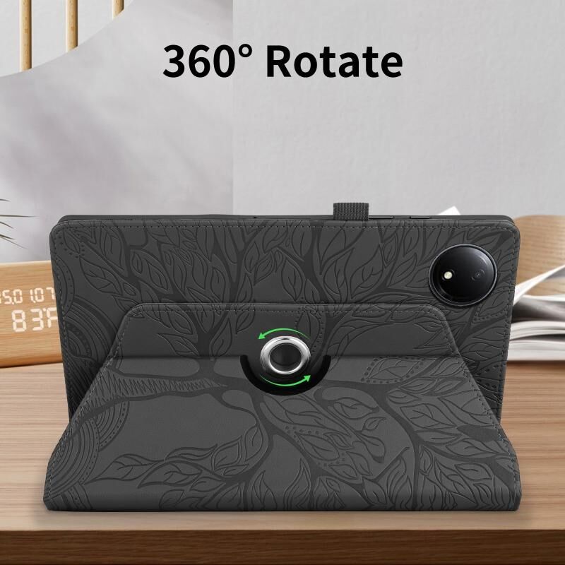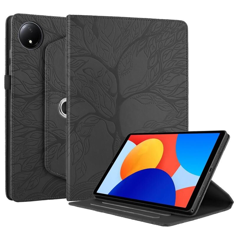 Θήκη δερμάτινη με ανάγλυφο σχέδιο "Δέντρο Ζωής" και περιστροφή για Xiaomi Redmi Pad SE 8.7 4G (Μαύρο)