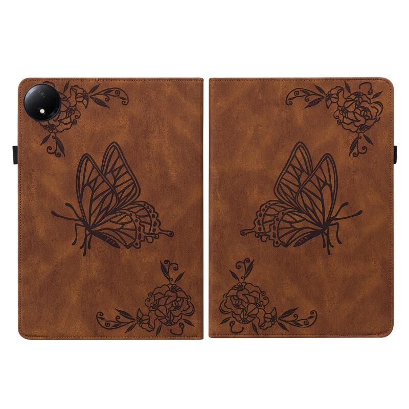 Για Xiaomi Redmi Pad SE 8.7 πεταλούδα λουλούδι ανάγλυφη δερμάτινη θήκη tablet (καφέ)