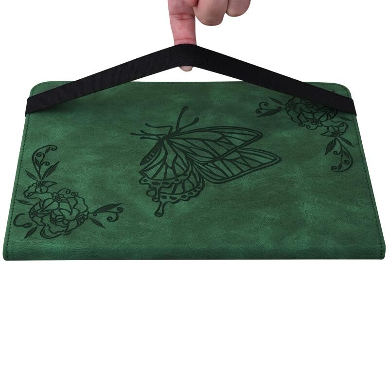 Για Xiaomi Redmi Pad SE 8.7 πεταλούδα λουλούδι ανάγλυφη δερμάτινη θήκη tablet (πράσινο)