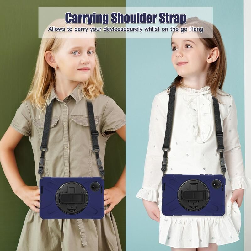 Για Xiaomi Redmi Pad SE 8.7 Περιστρεφόμενο κάτοχος σιλικόνης υβριδική θήκη tablet PC με ιμάντα ώμου (Navy Blue)