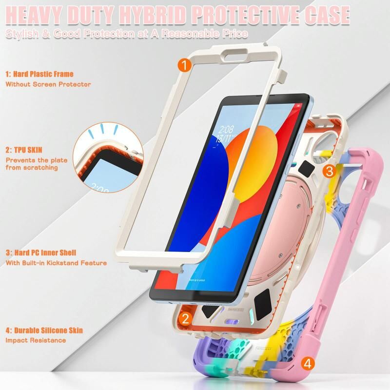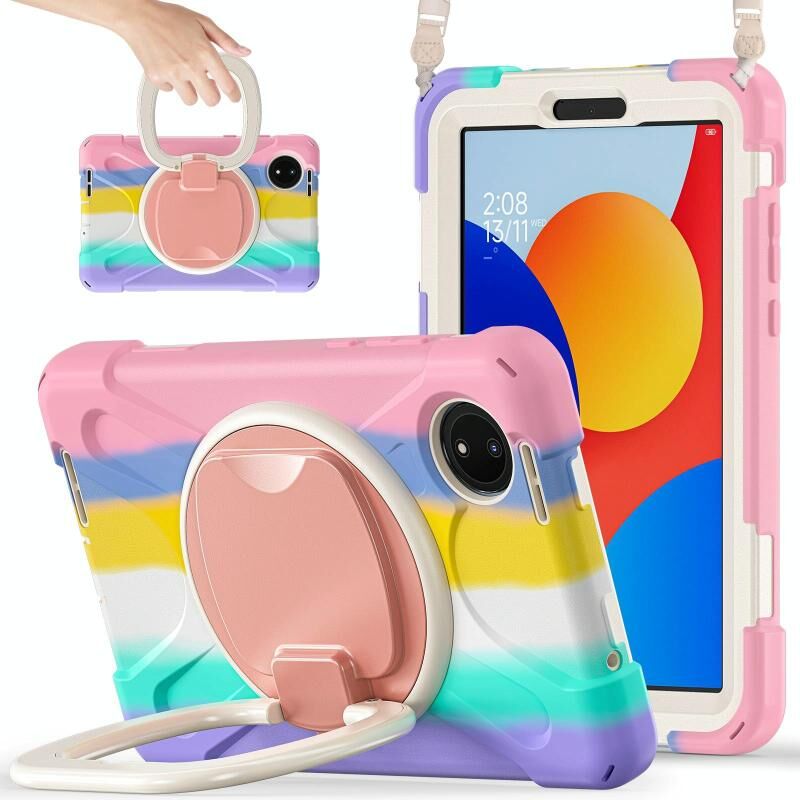 Θήκη ταμπλέτας υβριδικού υλικού σιλικόνης και PC για Xiaomi Redmi Pad SE 8.7 με βάση στήριξης & λουρί ώμου (Ναυτίλιο Μπλε Λάιμ)