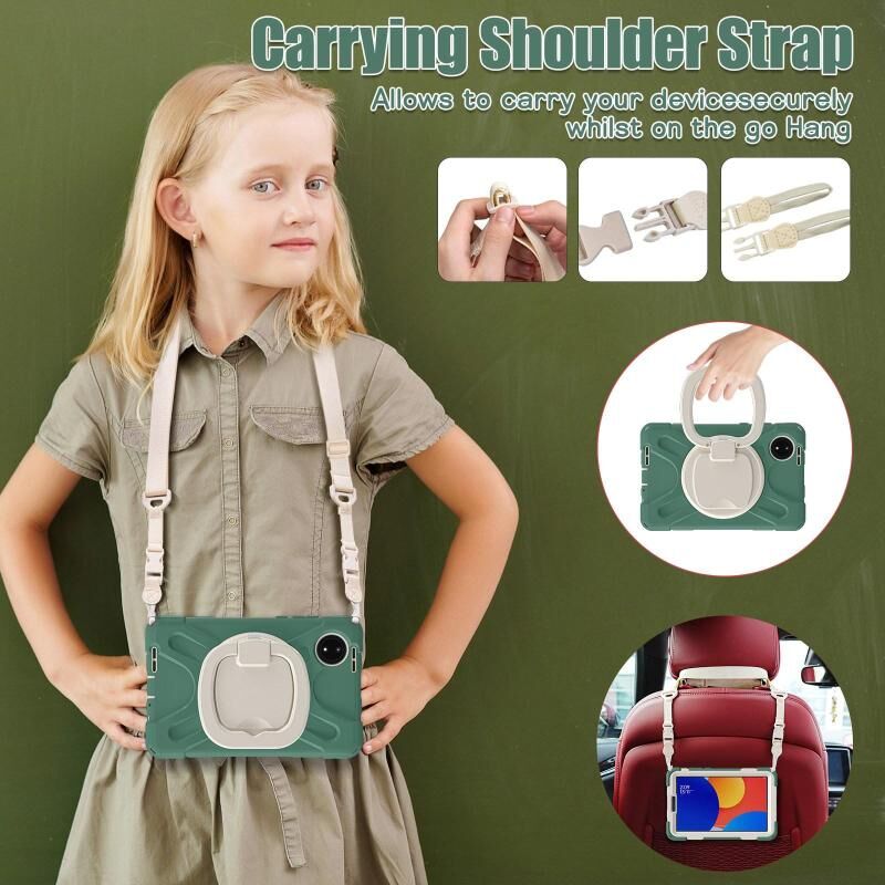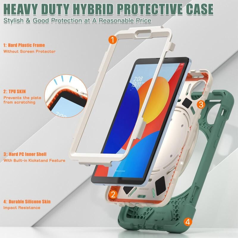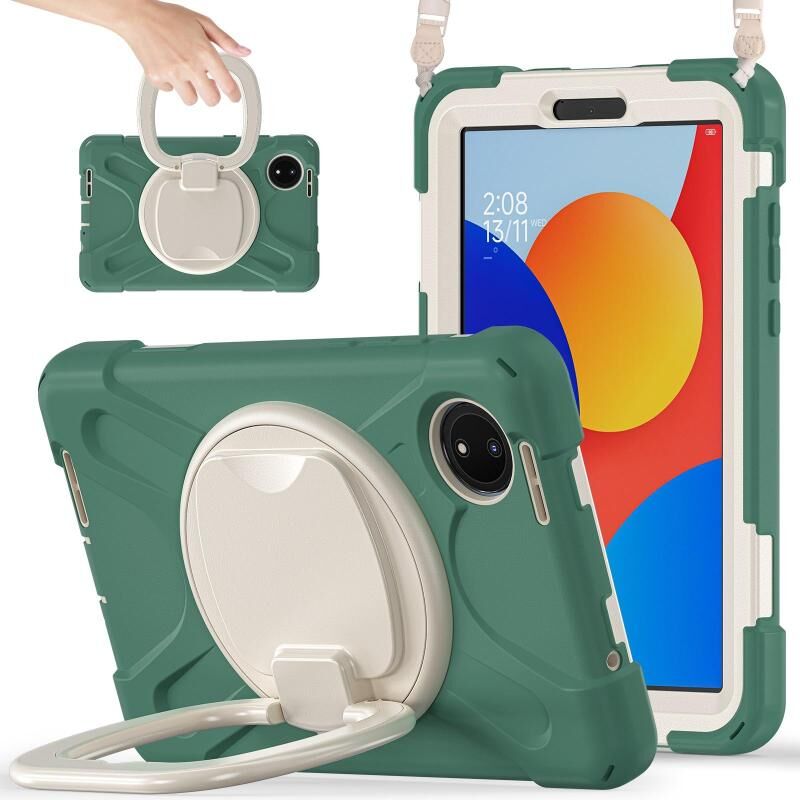 Θήκη ταμπλέτας υβριδικού υλικού σιλικόνης και PC για Xiaomi Redmi Pad SE 8.7 με βάση στήριξης & λουρί ώμου (Ναυτίλιο Μπλε Λάιμ)