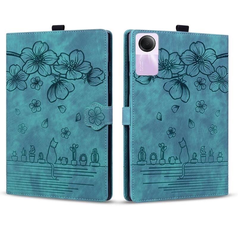 Θήκη ταμπλέτας από δέρμα με ανάγλυφο σχέδιο καρτούν Sakura Cat για Xiaomi Redmi Pad SE (Πράσινο)