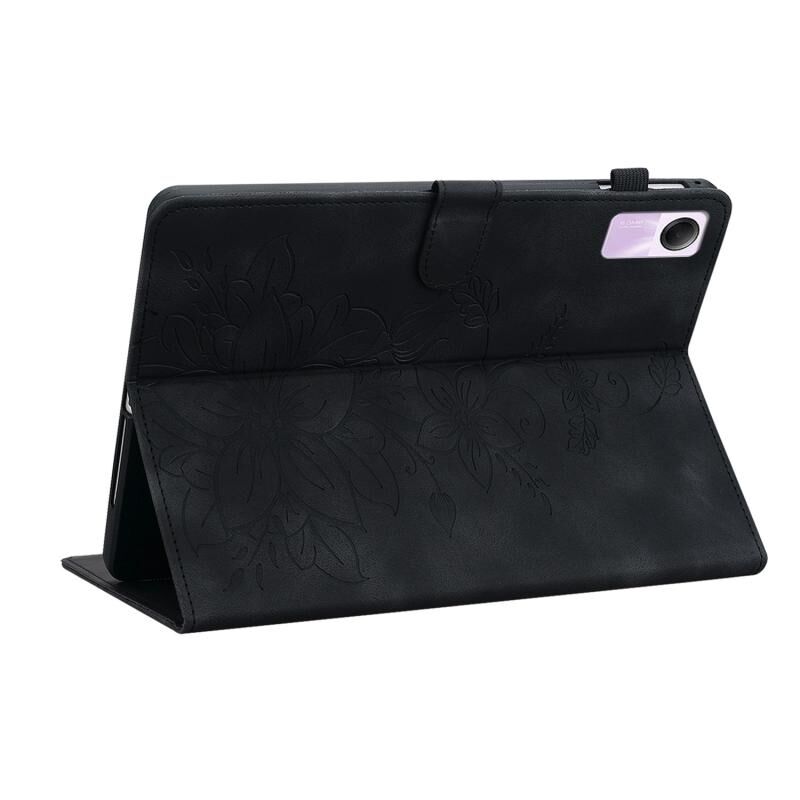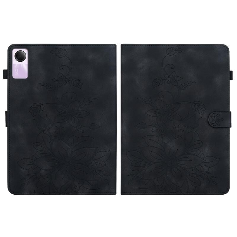 Για Xiaomi Redmi Pad SE Lily ανάγλυφη δερμάτινη θήκη tablet (μαύρο)