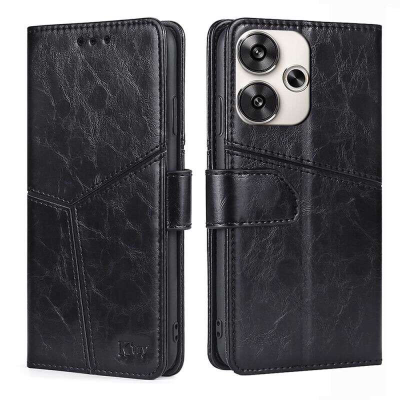 Για Xiaomi Redmi Turbo 3 5G γεωμετρική ραφή δερμάτινη θήκη τηλεφώνου (Μαύρο)