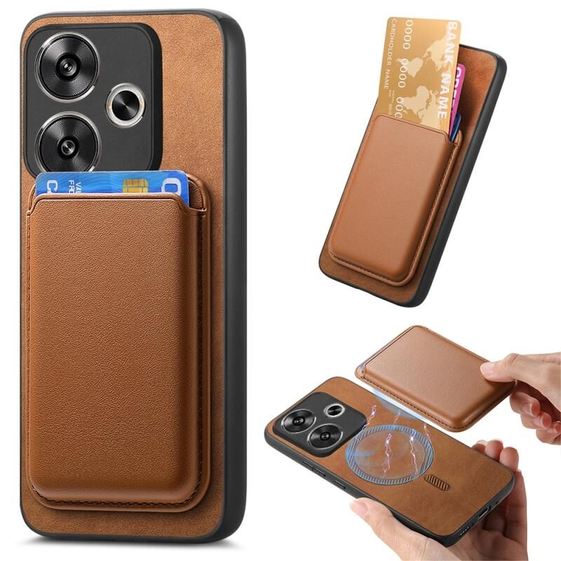 Για Xiaomi Redmi Turbo 3 5G Ρετρό Θήκη Κάρτας Magsafe, Μαλακή Θήκη Πίσω Καπακιού από PU (Καφέ)