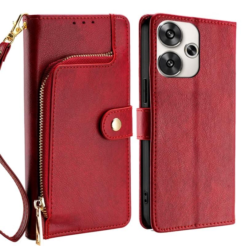 Για Xiaomi Redmi Turbo 3 5G φερμουάρ τσάντα δερμάτινη θήκη τηλεφώνου (κόκκινο)
