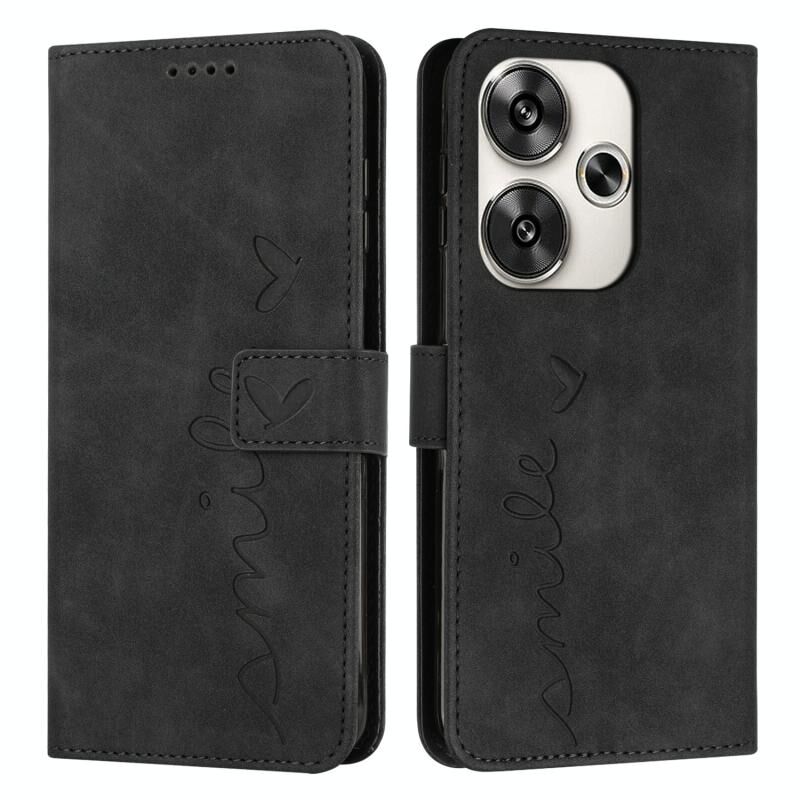 Για Xiaomi Redmi Turbo 3 Skin Feel Heart ανάγλυφη δερμάτινη θήκη τηλεφώνου με μακρύ κορδόνι (Μαύρο)