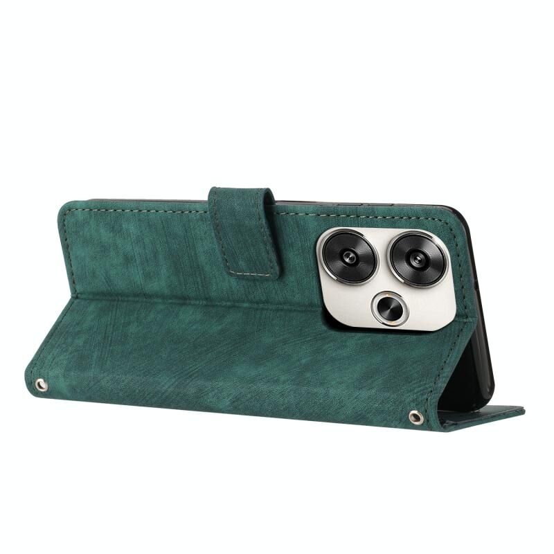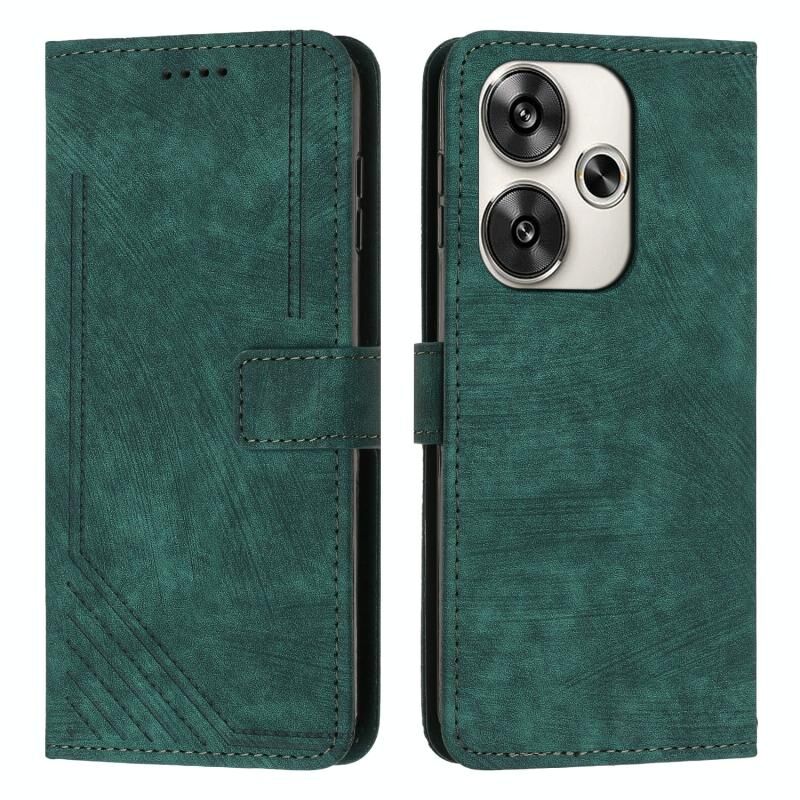 Για Xiaomi Redmi Turbo 3 Skin Feel Stripe μοτίβο δερμάτινη θήκη τηλεφώνου με μακρύ κορδόνι (πράσινο)