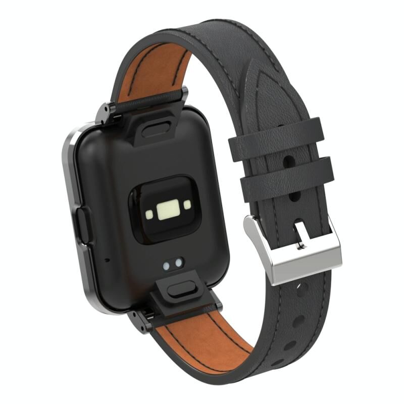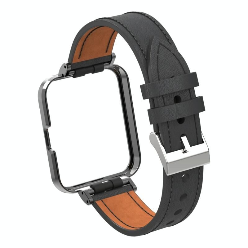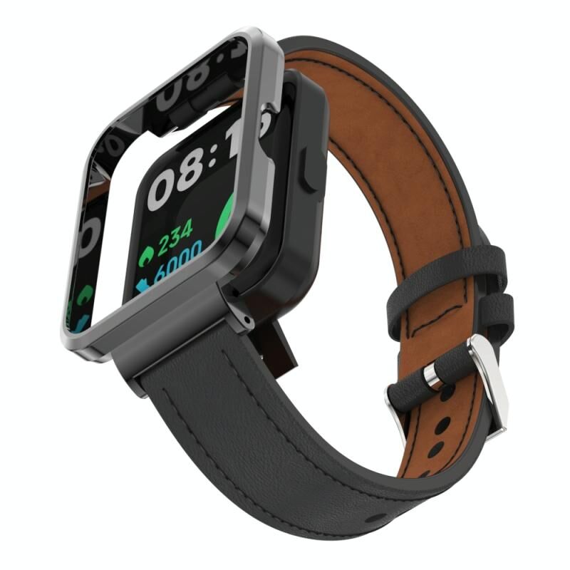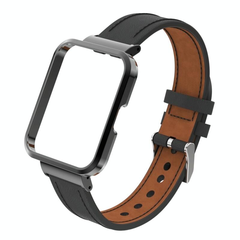 Για Xiaomi Redmi Watch 2 Γνήσιο δέρμα Μεταλλική θήκη ενσωματωμένο λουράκι ρολογιού (Μαύρο)