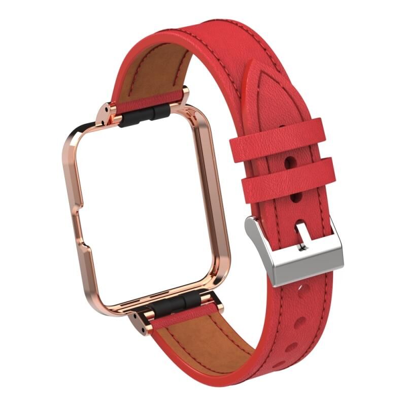 Για Xiaomi Redmi Watch 2 Γνήσιο δέρμα Μεταλλική θήκη ενσωματωμένη ζώνη ρολογιού (κόκκινο)