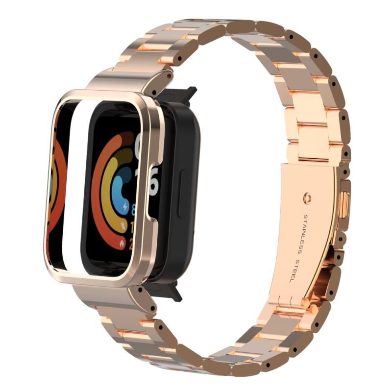 For Xiaomi Redmi Watch 2 Three-Bead Metal Watchband(Rose Gold)