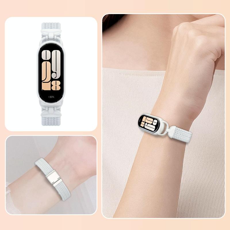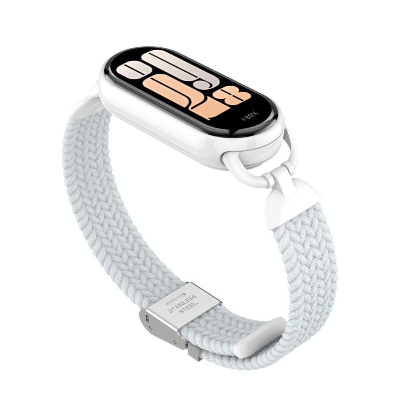 For Xiaomi Smart Band 10 / 9 / 8 Metal Head Two Sections Nylon Braided Watch Band(Ceramic White)
