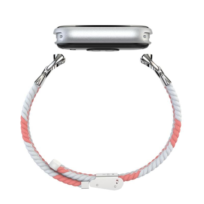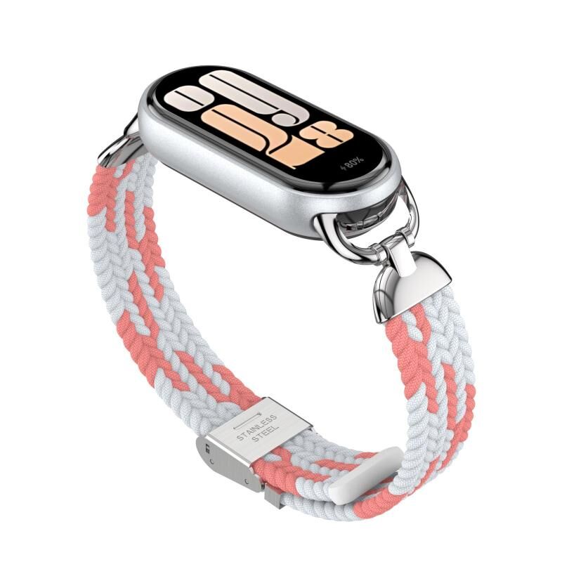For Xiaomi Smart Band 10 / 9 / 8 Metal Head Two Sections Nylon Braided Watch Band(Pink White)