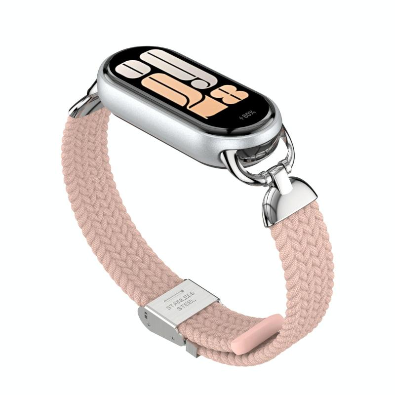 For Xiaomi Smart Band 10 / 9 / 8 Metal Head Two Sections Nylon Braided Watch Band(Powdered Sand)