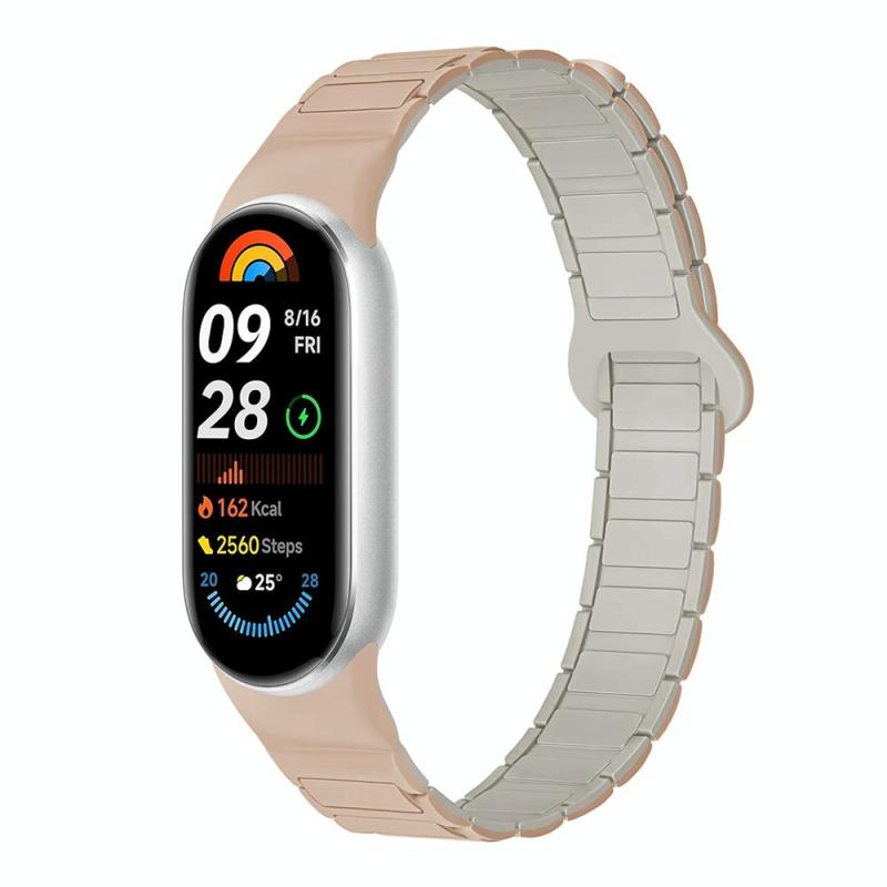 Για Xiaomi Smart Band 10 / 9 / 8 Μαγνητικό Λουράκι Σιλικόνης Tri-beads (Milk Tea Πέτρα Λευκό)