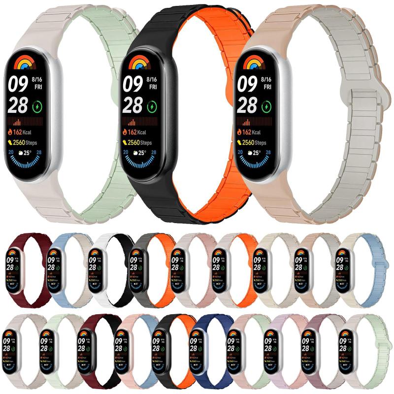 Για Xiaomi Smart Band 10 / 9 / 8 Μαγνητικό Λουράκι Σιλικόνης Tri-beads (Λευκό Misty Μπλε)