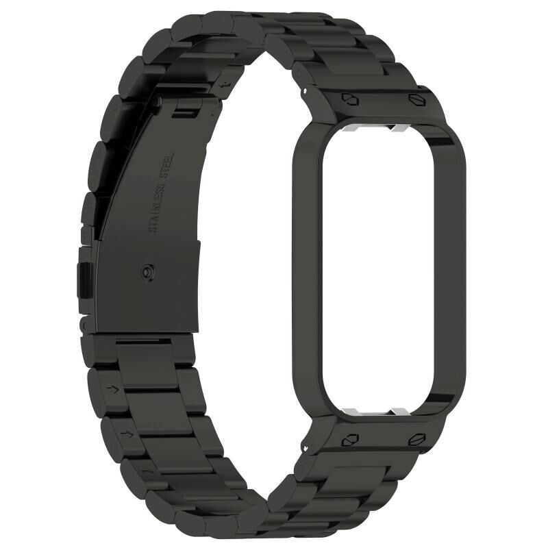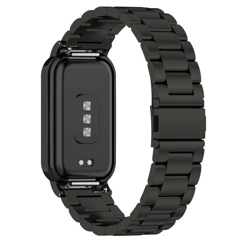 Για Xiaomi Smart Band 8 Active Τρεις χάντρες από ανοξείδωτο χάλυβα ρολόι + ρολόι μεταλλικό πλαίσιο (μαύρο)