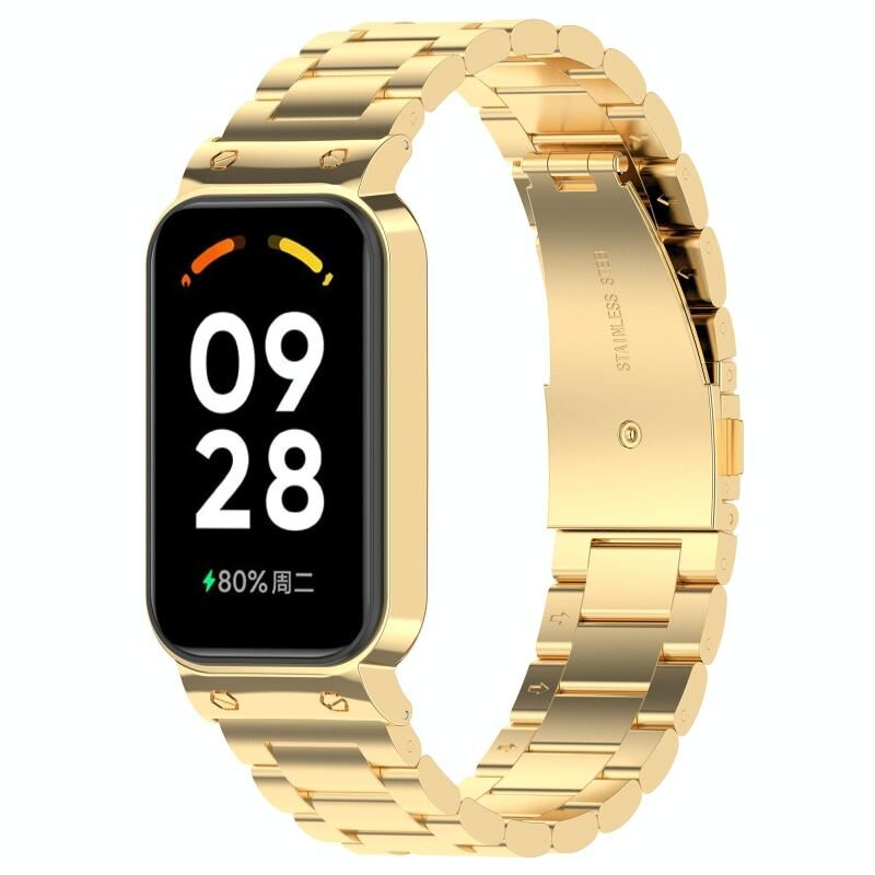 Για Xiaomi Smart Band 8 Active Τρεις χάντρες από ανοξείδωτο χάλυβα ρολόι + ρολόι μεταλλικό πλαίσιο (χρυσό)