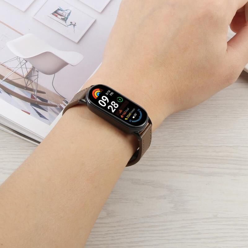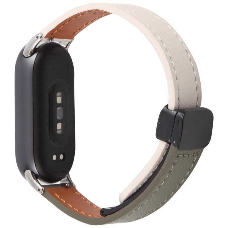 Για Xiaomi Smart Band 9 / 8 Πτυσσόμενη μαγνητική πόρπη δερμάτινη ζώνη ρολογιού μικροϊνών (βερίκοκο + βούτυρο)