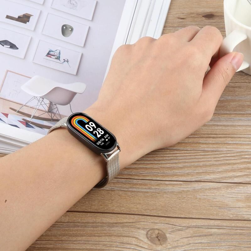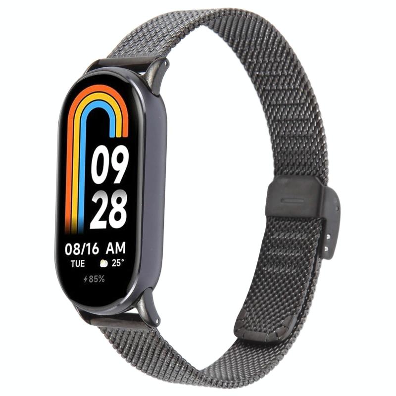For Xiaomi Smart Band 9 / 8 Integrated Buckle Embossed Milanese Metal Watch Band(Black)