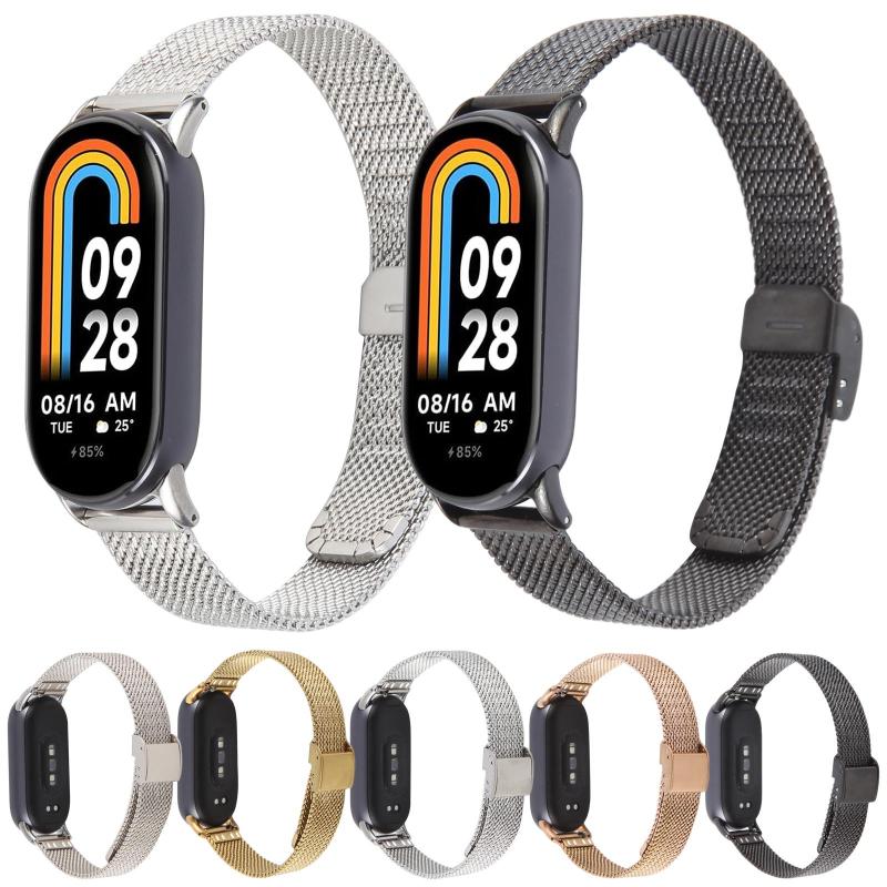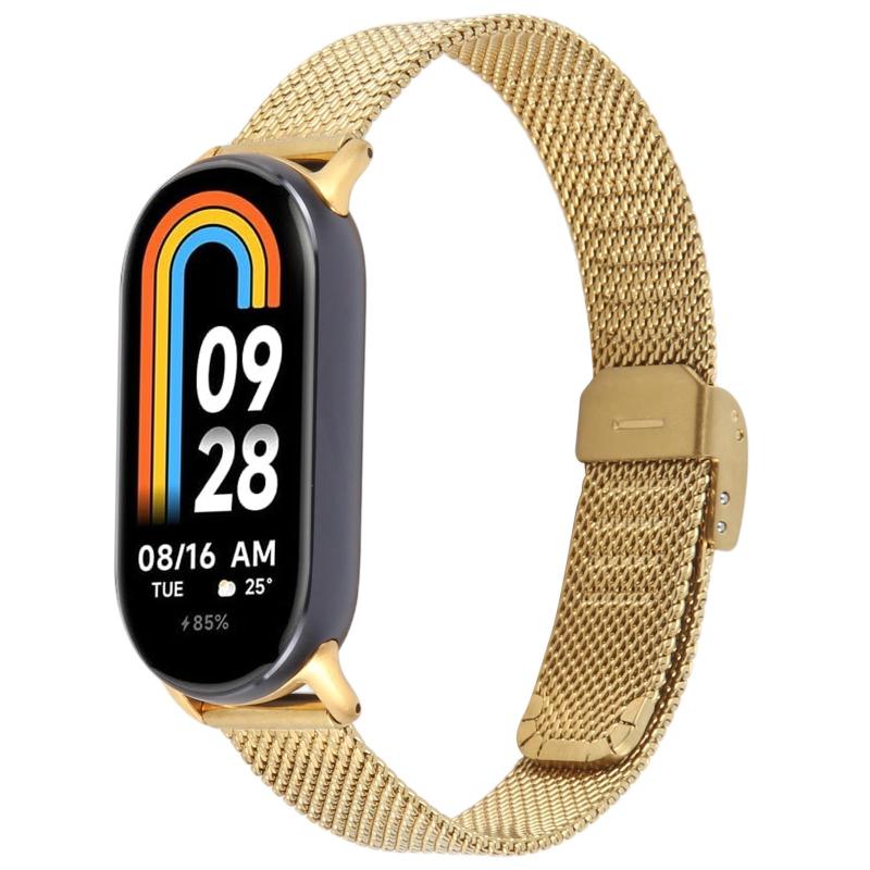 For Xiaomi Smart Band 9 / 8 Integrated Buckle Embossed Milanese Metal Watch Band(Gold)