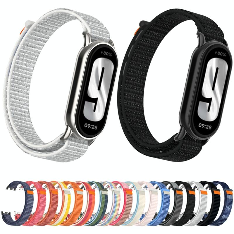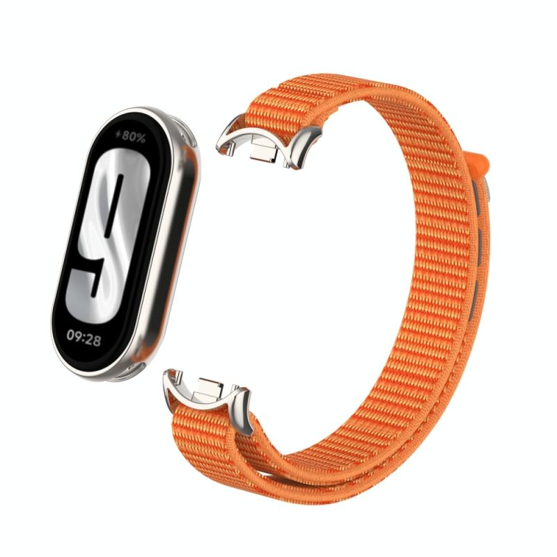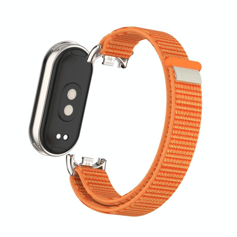 For Xiaomi Smart Band 9 / 8 Metal Connector + Loop Nylon Hook and Loop Fastener Watch Band(Orange)