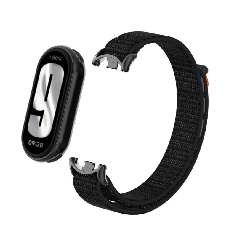 Για Xiaomi Smart Band 9 / 8 Μεταλλικό σύνδεσμο + βρόχο νάιλον γάντζο και βρόχο συνδετήρα ρολόι μπάντα (αντανακλαστικό μαύρο)