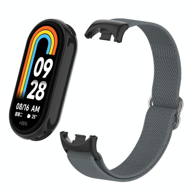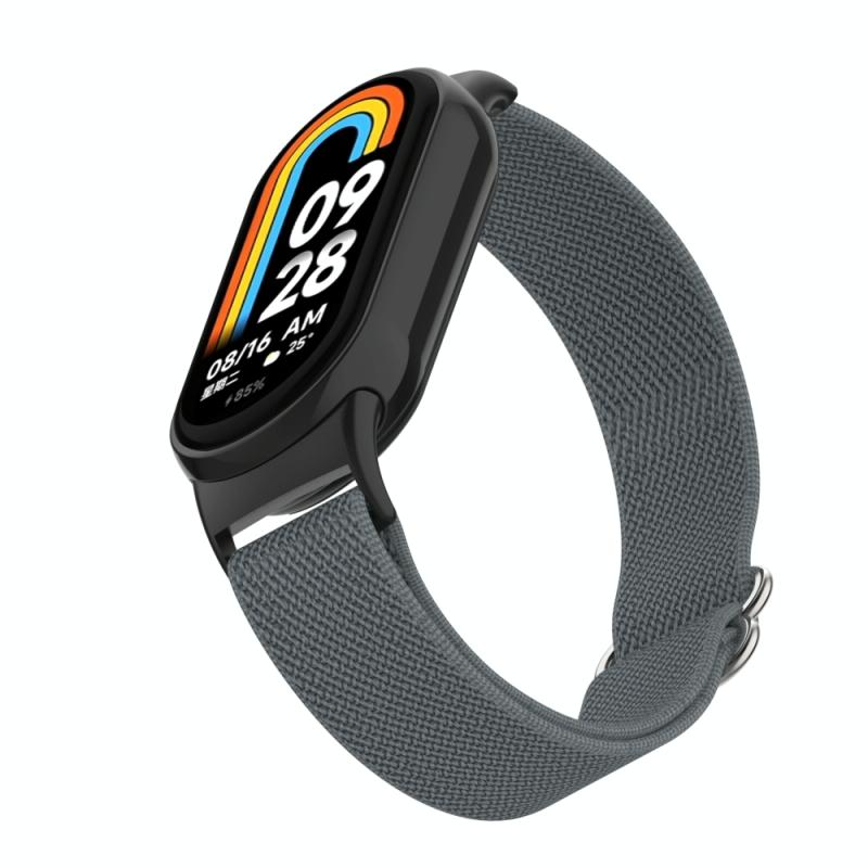 For Xiaomi Smart Band 9 / 8 Plastic Plug Plain Elastic Nylon Watch Band(Charcoal Color)