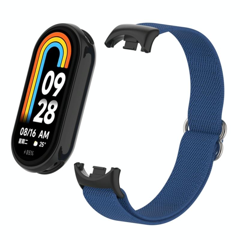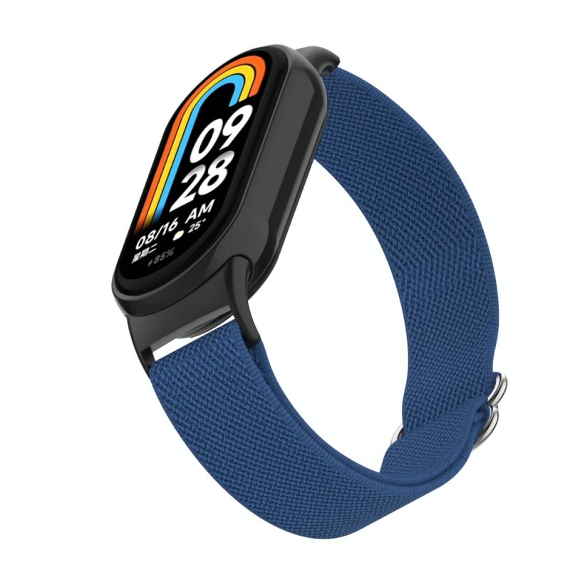 For Xiaomi Smart Band 9 / 8 Plastic Plug Plain Elastic Nylon Watch Band(Cold Blue)