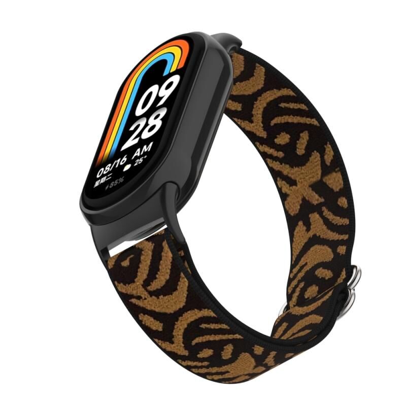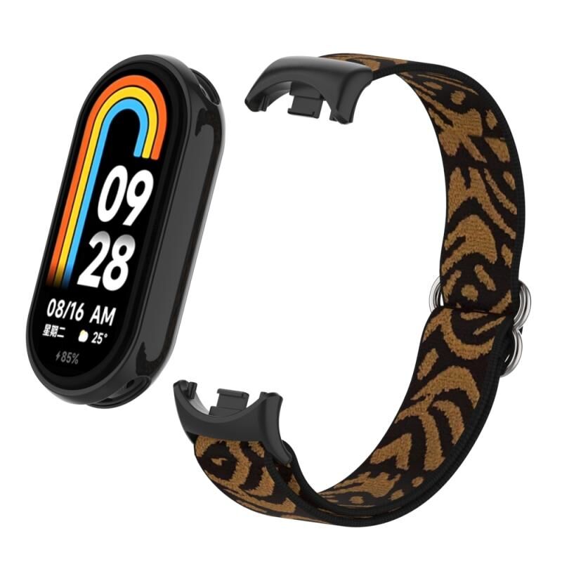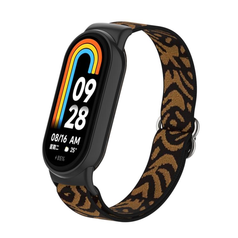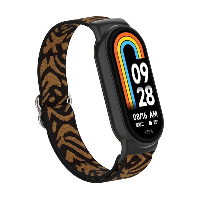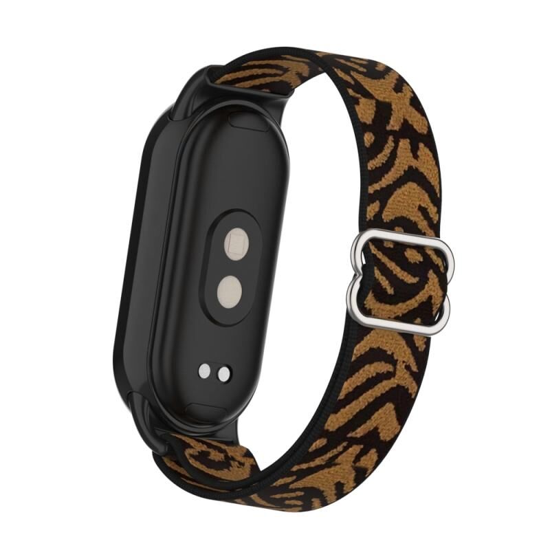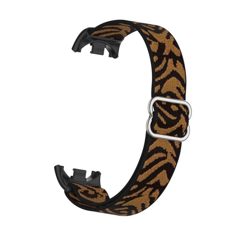 For Xiaomi Smart Band 9 / 8 Plastic Plug Plain Elastic Nylon Watch Band(Leopard Print)