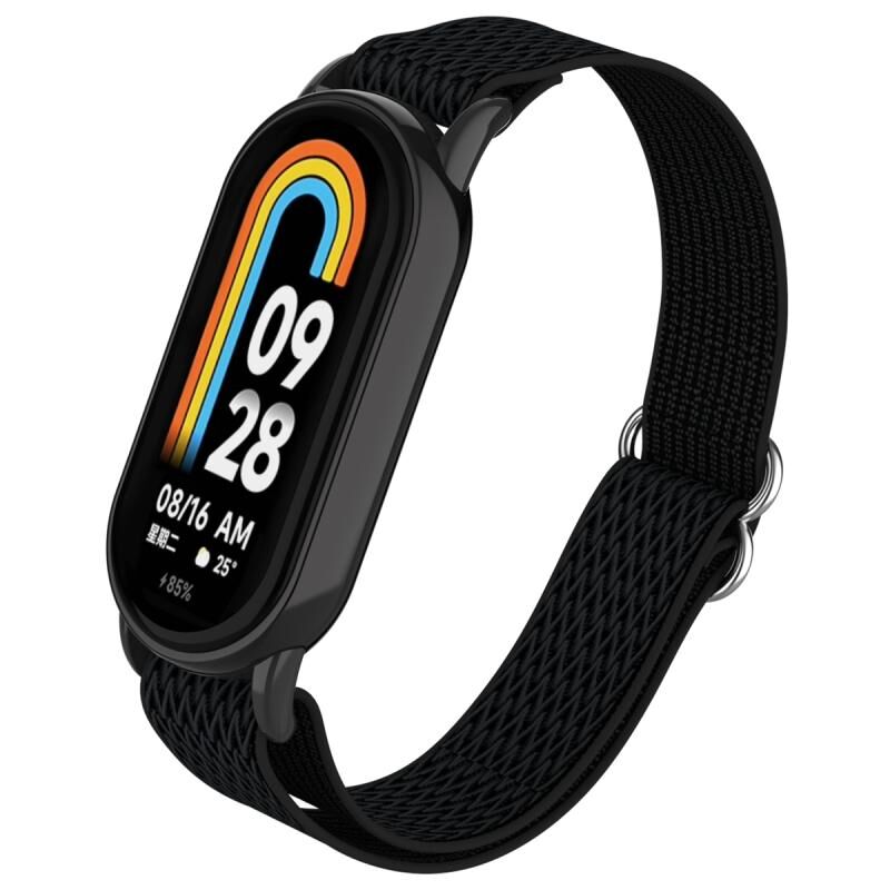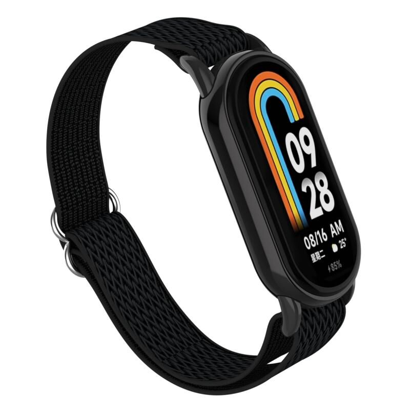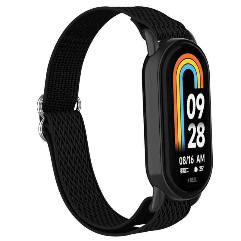 For Xiaomi Smart Band 9 / 8 Plastic Plug Wave Elastic Nylon Watch Band(Black)