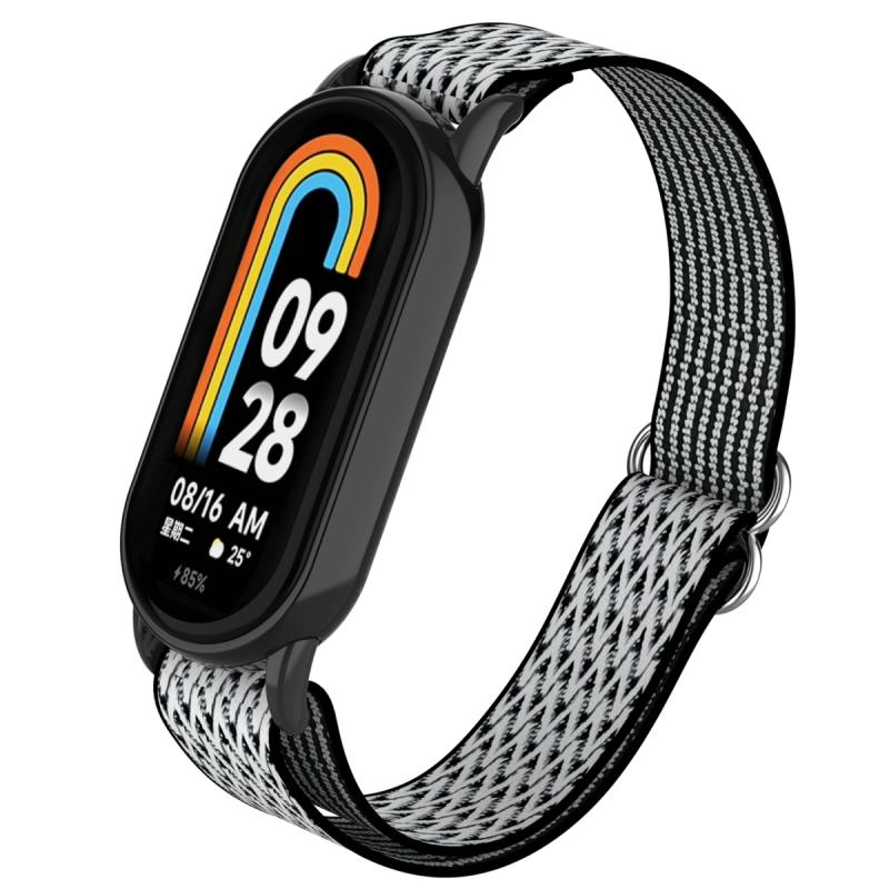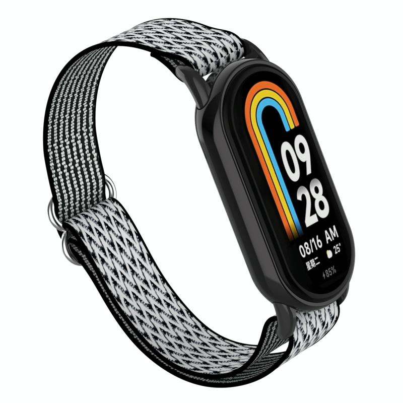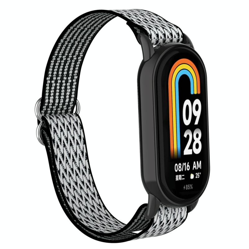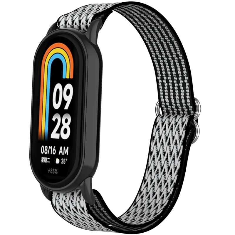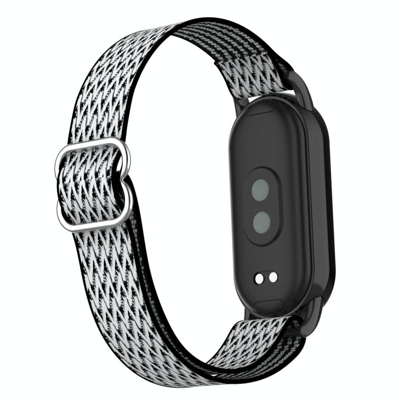 For Xiaomi Smart Band 9 / 8 Plastic Plug Wave Elastic Nylon Watch Band(Black White)