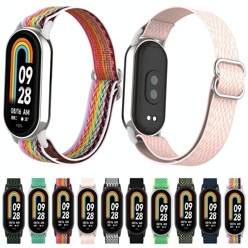 For Xiaomi Smart Band 9 / 8 Plastic Plug Wave Elastic Nylon Watch Band(Bright Yellow)