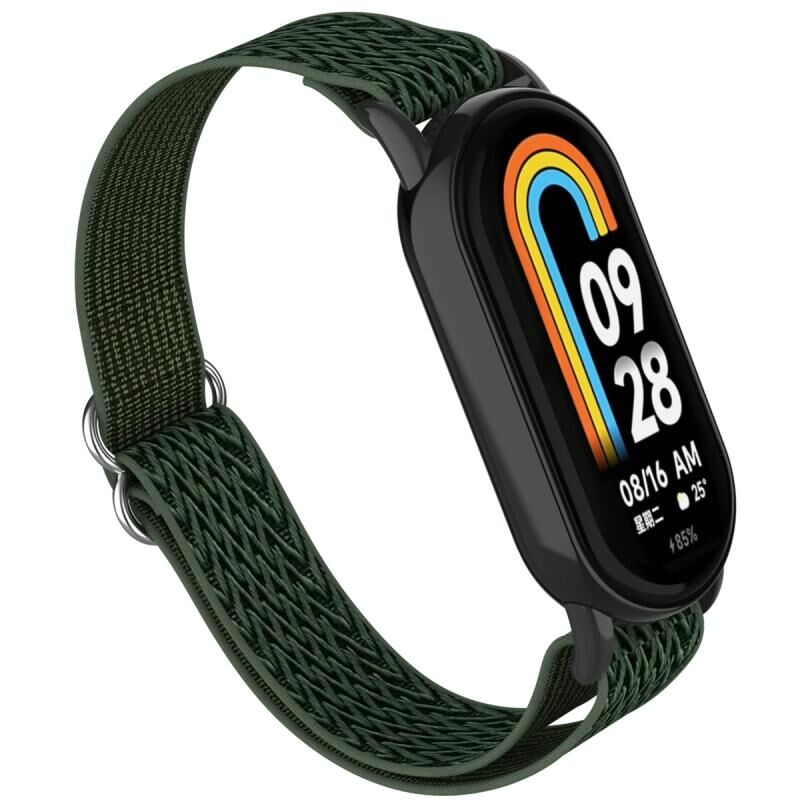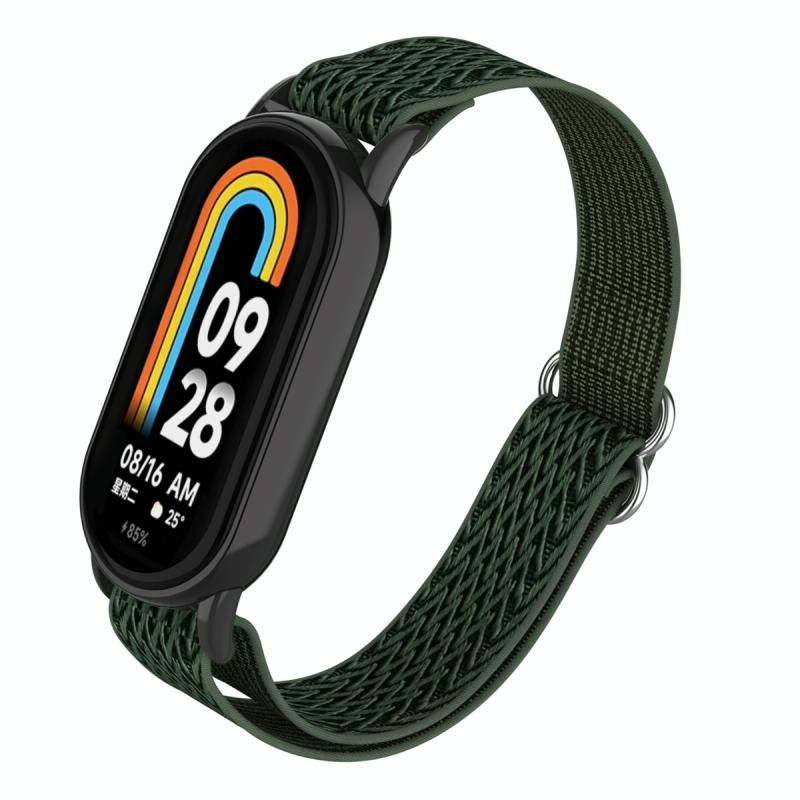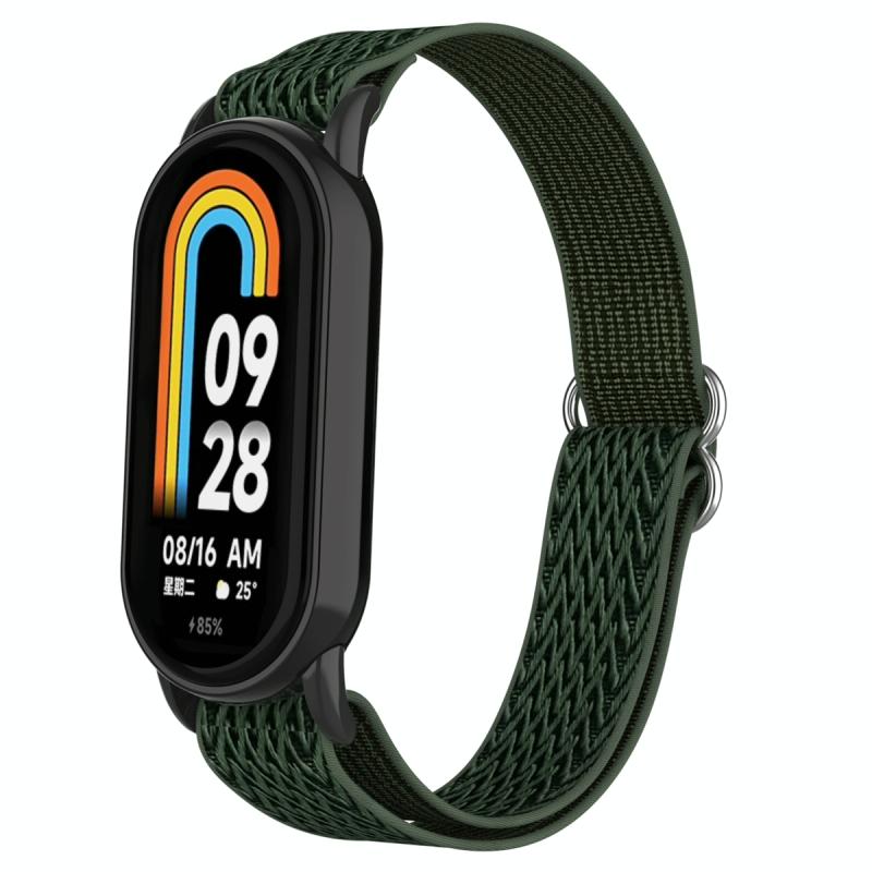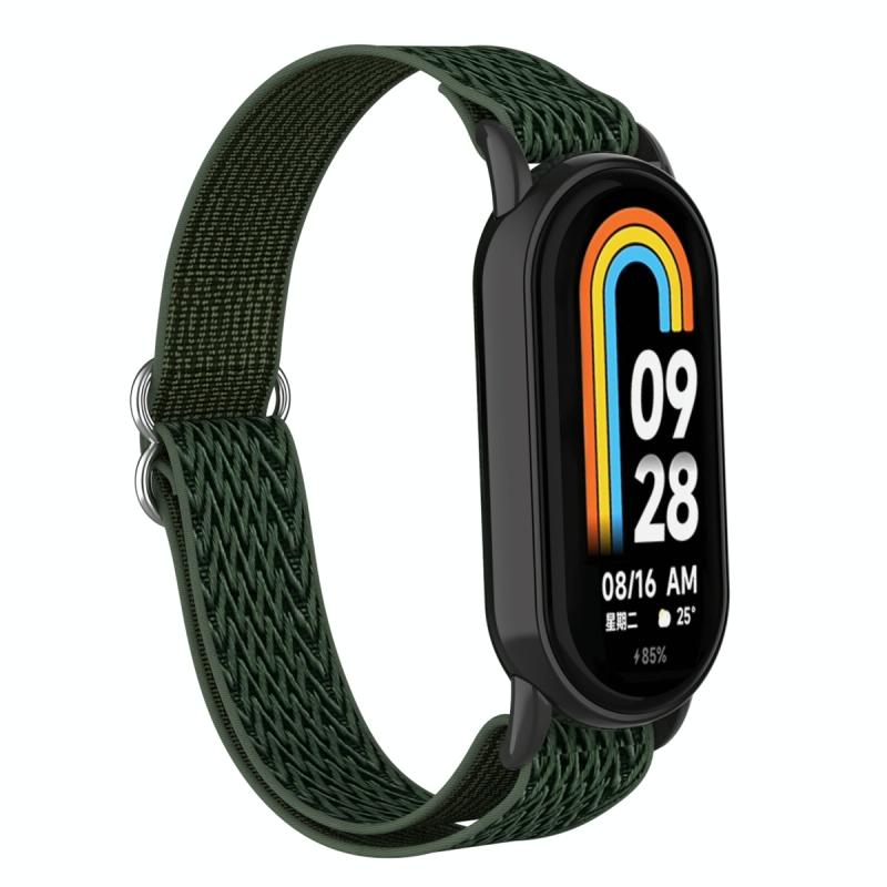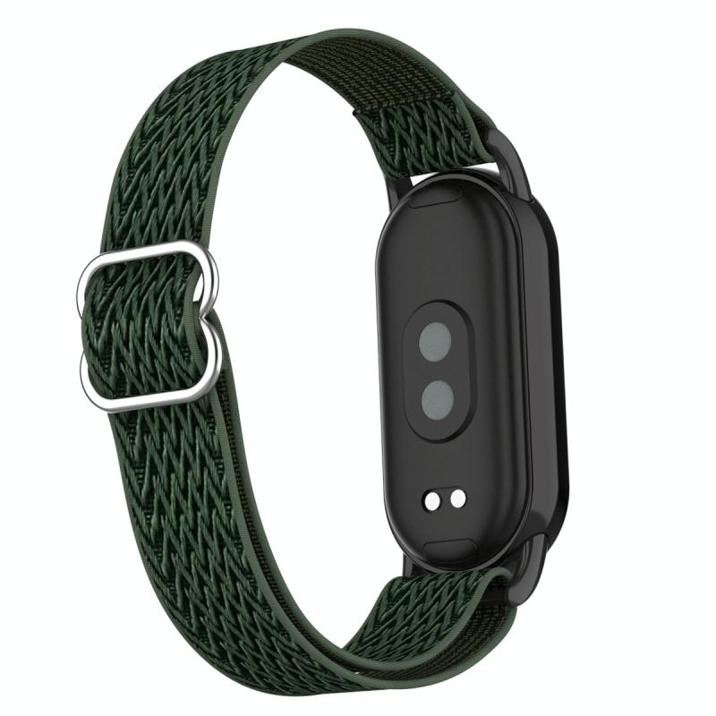 For Xiaomi Smart Band 9 / 8 Plastic Plug Wave Elastic Nylon Watch Band(Dark Green)